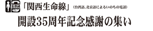 「関西生命線」はボランテア団体であり、この名称は中国語の表現でして、英語では「ライフライン」、日本語では「いのちの電話」と表現されておりまして、世界的な組織であります。46年前オーストラリアのメゾヂスト教会のアラン・ウオーカー牧師によって設立されました。私の出身地の台湾では日本より1年早く設立され、すでに41年の歴史があります。
