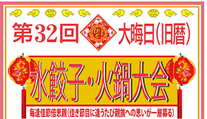 第32回旧暦大みそか水餃子・火鍋大会のご案内 2月16日(月)午後6時00分から 会場は「FUN SPACE DINER」!! 詳しくはこちらから |